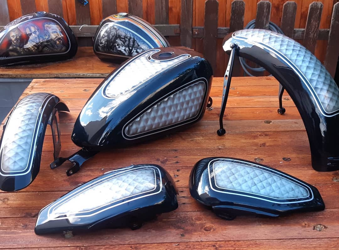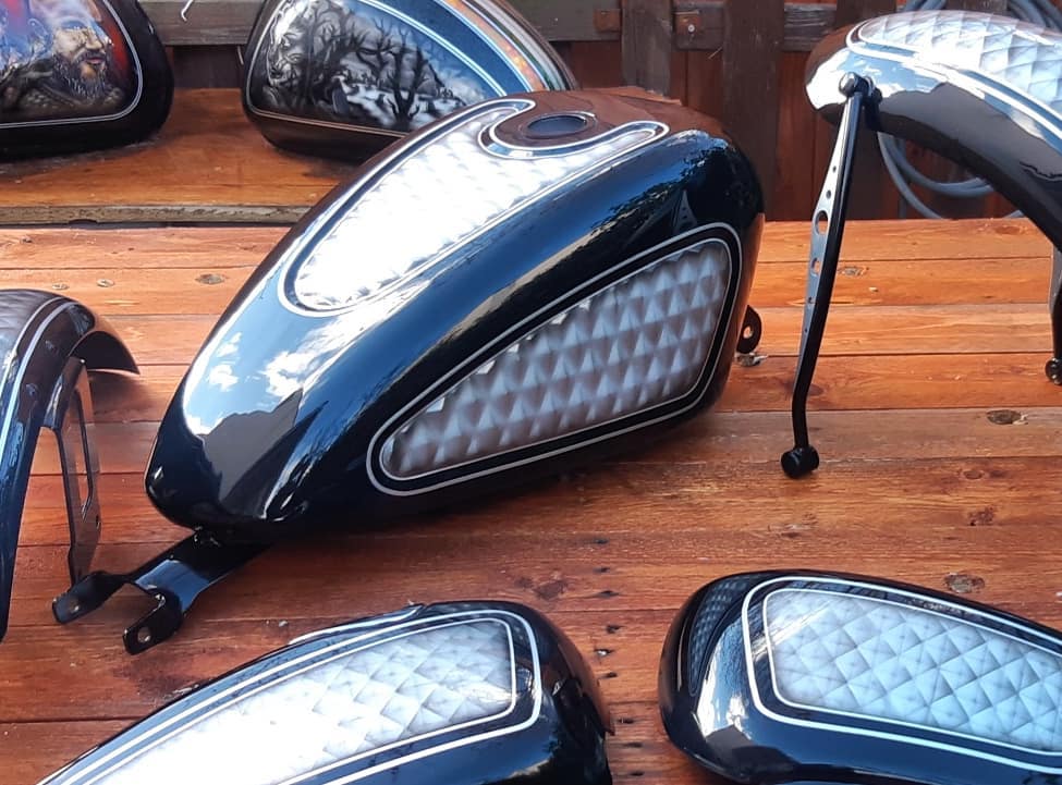 Si piensas donde pintar mi moto? Nosotros nos dedicamos a restauracion de pintura de motos custom, motos clasicas, cascos de moto, piezas de moto, instrumentos musicales, tablas, cartelería y cualquier objeto que se pueda personalizar con su pintura